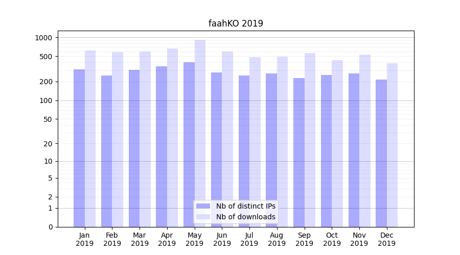 | Month | Nb of distinct IPs | Nb of downloads |