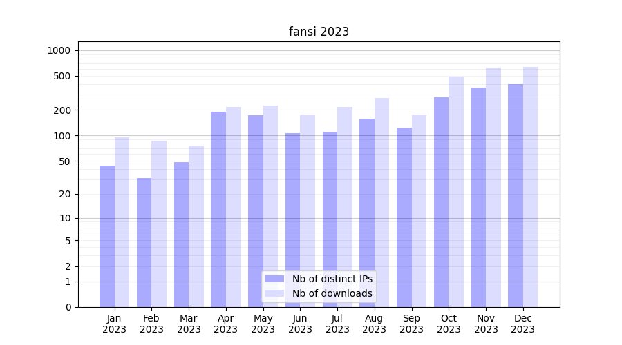| Month | Nb of distinct IPs | Nb of downloads |