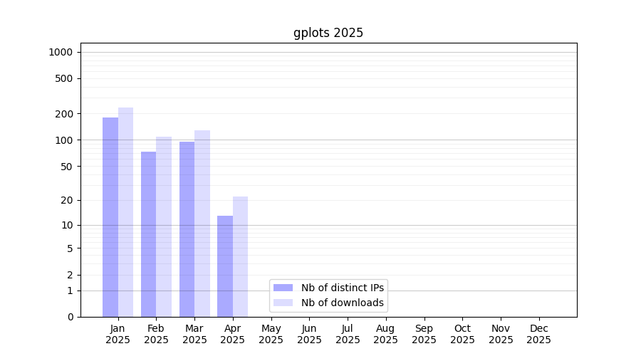 | Month | Nb of distinct IPs | Nb of downloads |