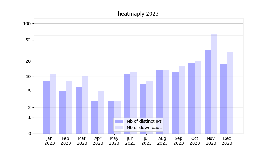 | Month | Nb of distinct IPs | Nb of downloads |