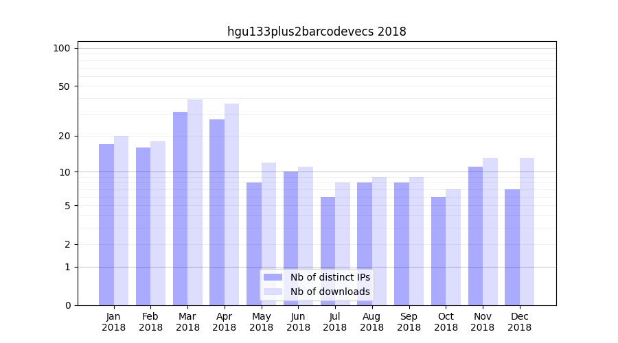 Download stats for experiment package hgu133plus2barcodevecs