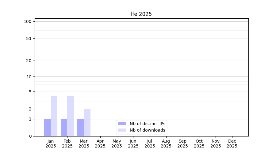 Number of downloads for experiment package lfe, year by year, from 2025 back to 2014 (years with no downloads are omitted):