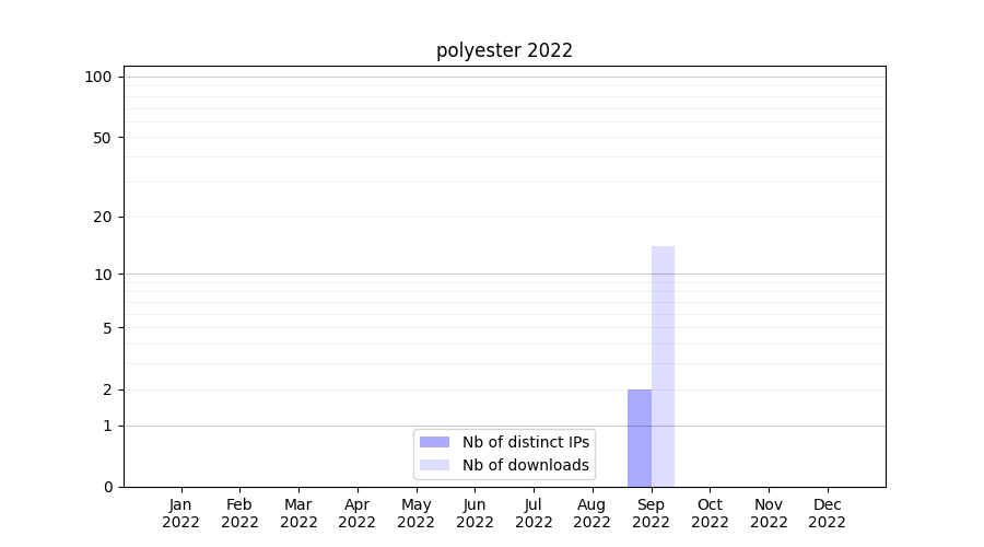 Number of downloads for experiment package polyester, year by year, from 2025 back to 2014 (years with no downloads are omitted):