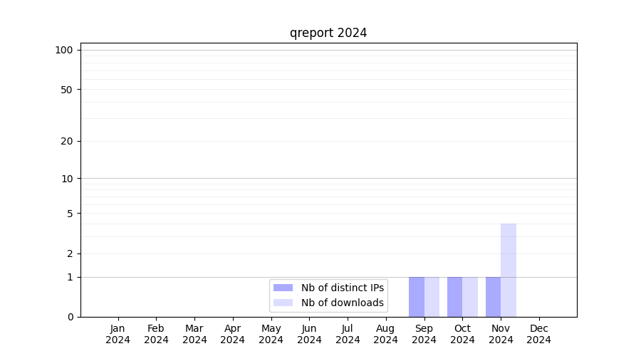 Number of downloads for experiment package qreport, year by year, from 2025 back to 2014 (years with no downloads are omitted):