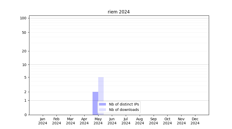 Number of downloads for experiment package riem, year by year, from 2025 back to 2014 (years with no downloads are omitted):