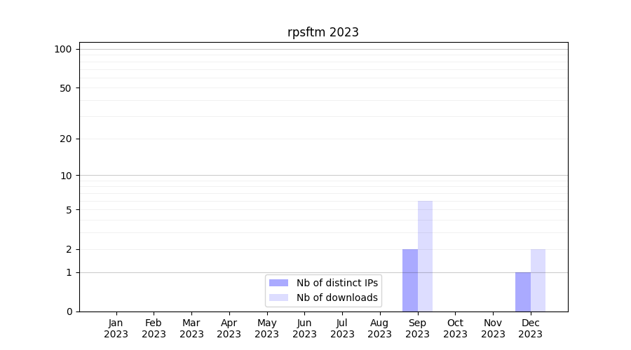 Number of downloads for experiment package rpsftm, year by year, from 2025 back to 2014 (years with no downloads are omitted):