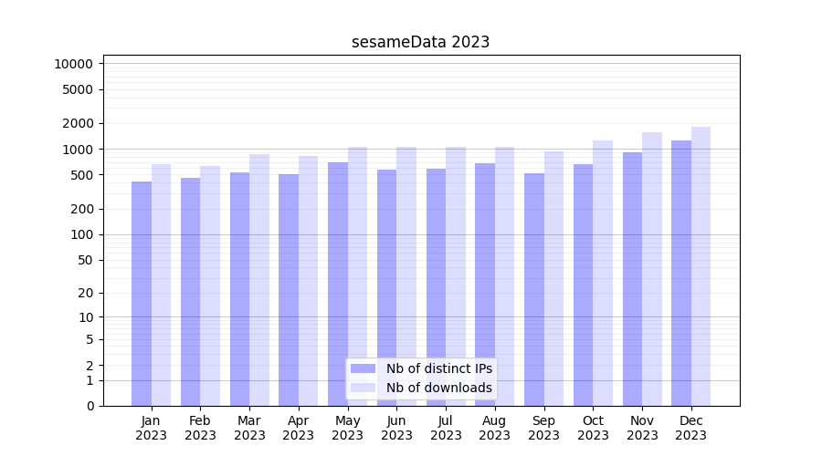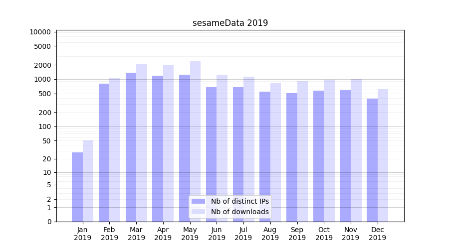 | Month | Nb of distinct IPs | Nb of downloads |