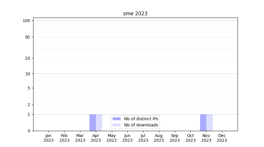 Number of downloads for experiment package sme, year by year, from 2025 back to 2014 (years with no downloads are omitted):