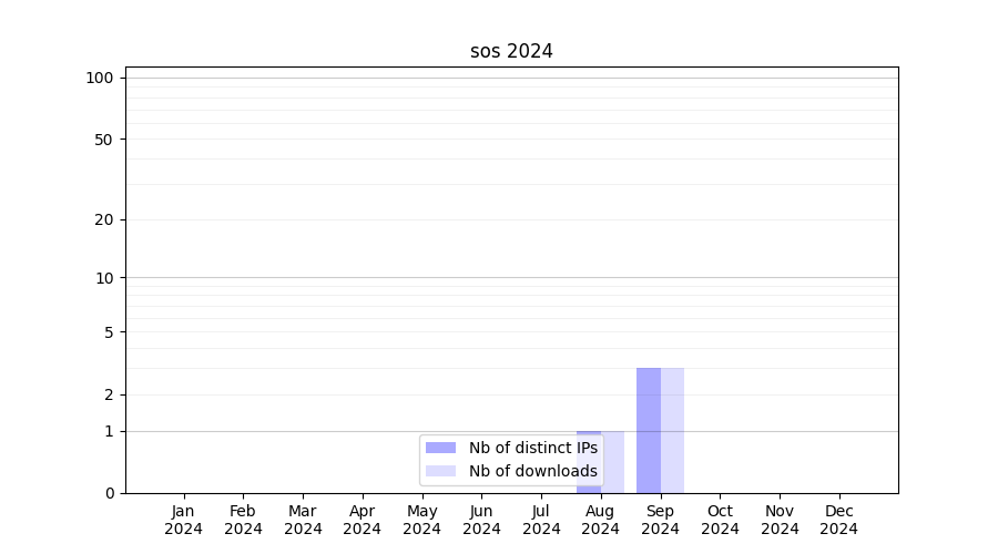 Number of downloads for experiment package sos, year by year, from 2025 back to 2014 (years with no downloads are omitted):