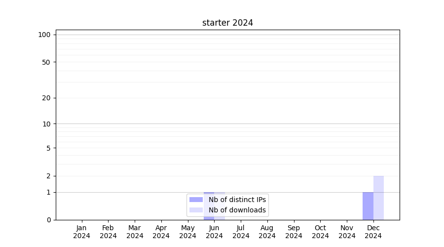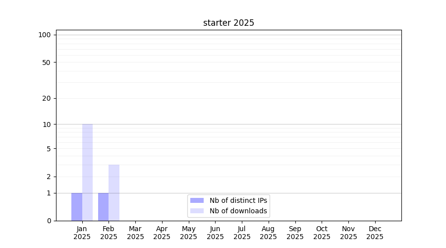 Number of downloads for experiment package starter, year by year, from 2025 back to 2014 (years with no downloads are omitted):
