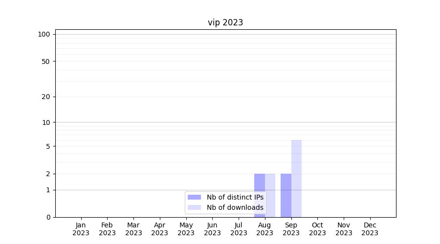 Number of downloads for experiment package vip, year by year, from 2025 back to 2014 (years with no downloads are omitted):