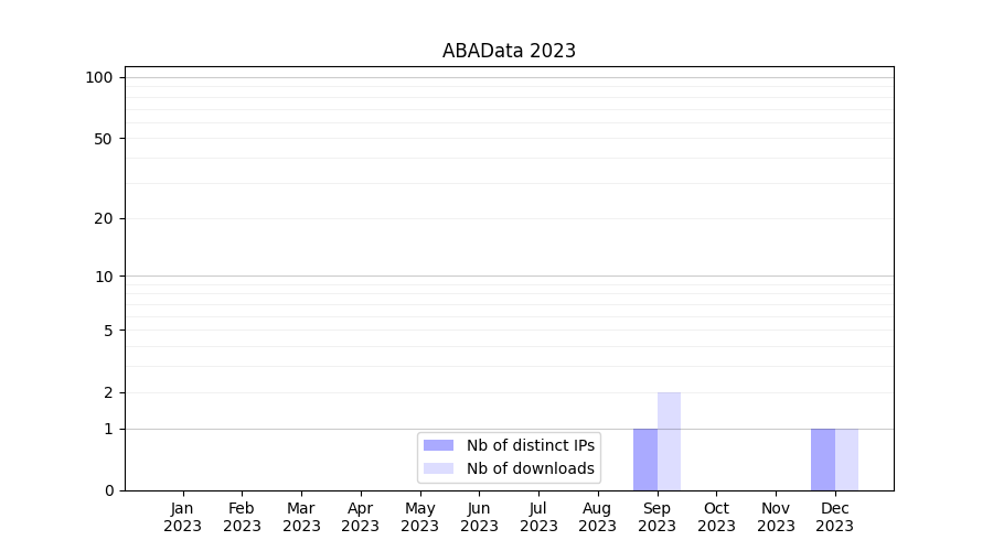 Number of downloads for workflow package ABAData, year by year, from 2025 back to 2015 (years with no downloads are omitted):