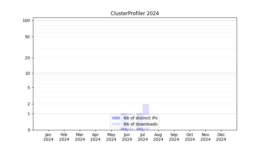 Number of downloads for workflow package ClusterProfiler, year by year, from 2025 back to 2015 (years with no downloads are omitted):