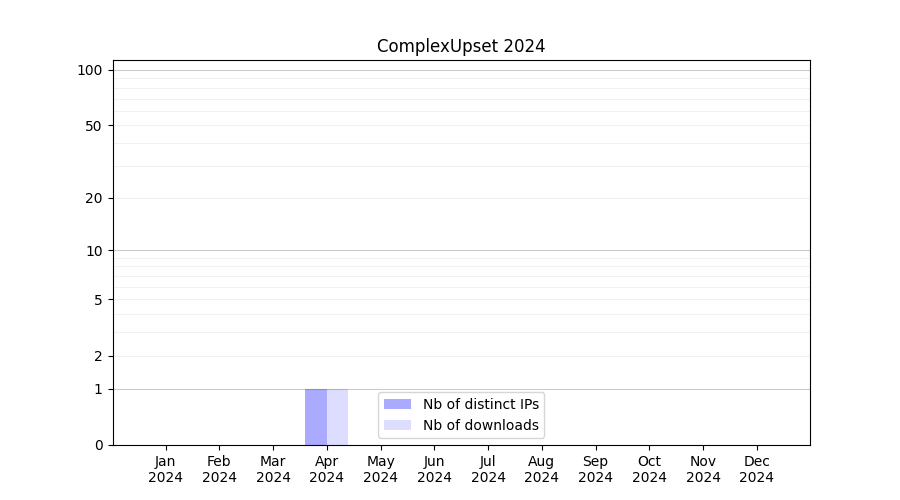 Number of downloads for workflow package ComplexUpset, year by year, from 2025 back to 2015 (years with no downloads are omitted):