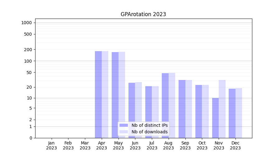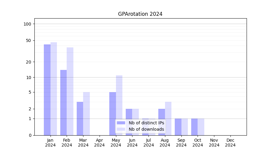 Number of downloads for workflow package GPArotation, year by year, from 2025 back to 2015 (years with no downloads are omitted):