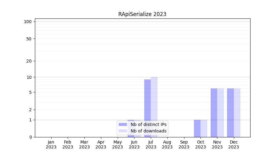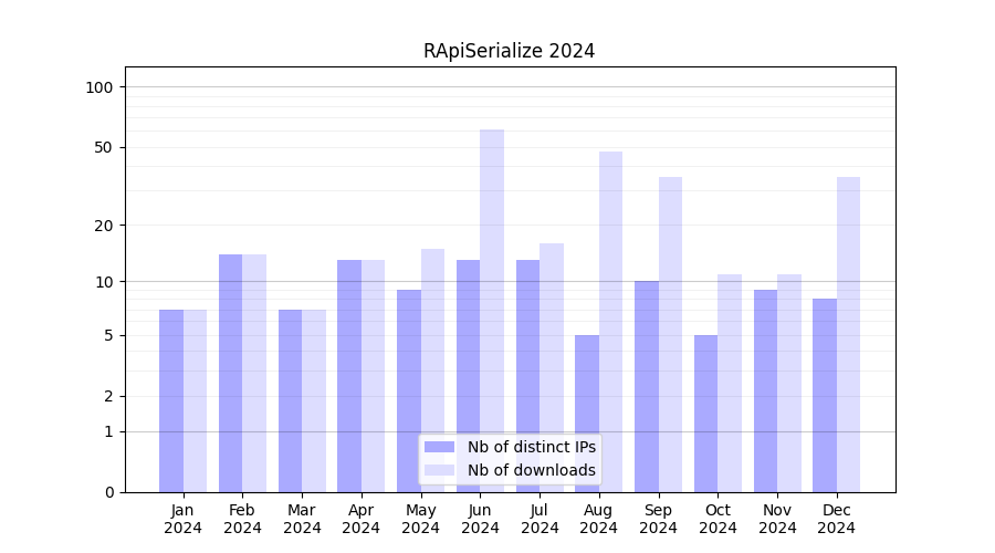 Number of downloads for workflow package RApiSerialize, year by year, from 2025 back to 2015 (years with no downloads are omitted):