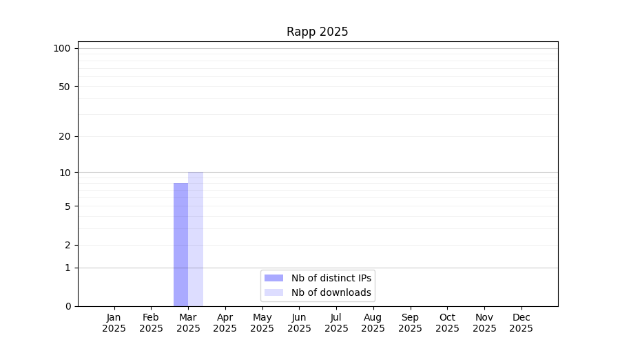 Number of downloads for workflow package Rapp, year by year, from 2025 back to 2015 (years with no downloads are omitted):