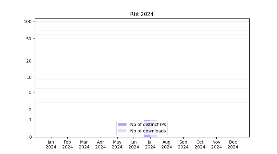 Number of downloads for workflow package Rfit, year by year, from 2025 back to 2015 (years with no downloads are omitted):