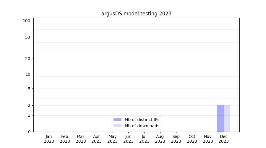 Number of downloads for workflow package argusDS.model.testing, year by year, from 2025 back to 2015 (years with no downloads are omitted):