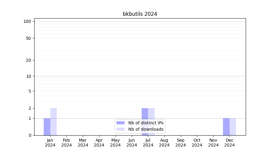 Number of downloads for workflow package bkbutils, year by year, from 2025 back to 2015 (years with no downloads are omitted):