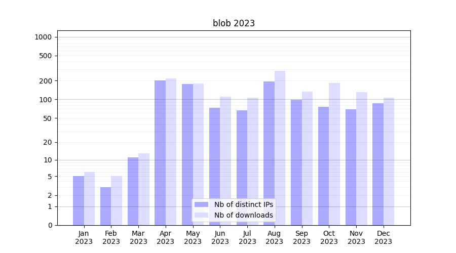 Number of downloads for workflow package blob, year by year, from 2025 back to 2015 (years with no downloads are omitted):