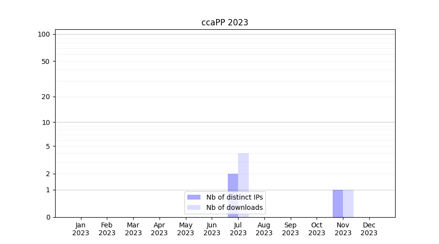 Number of downloads for workflow package ccaPP, year by year, from 2025 back to 2015 (years with no downloads are omitted):