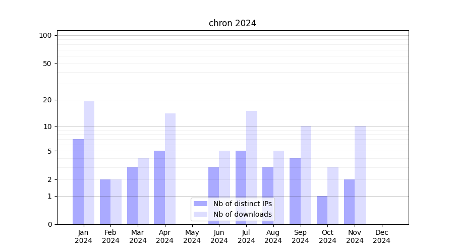 | Month | Nb of distinct IPs | Nb of downloads |