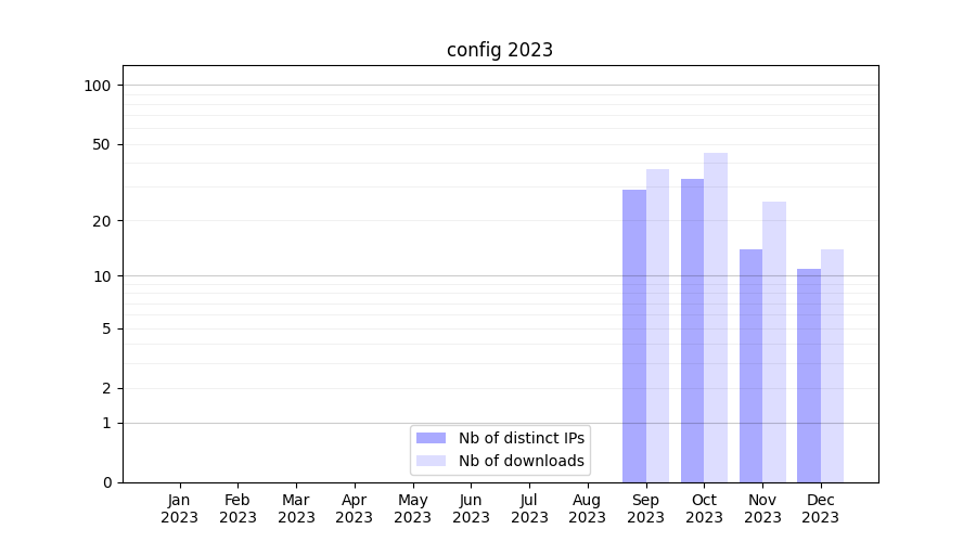 Number of downloads for workflow package config, year by year, from 2025 back to 2015 (years with no downloads are omitted):