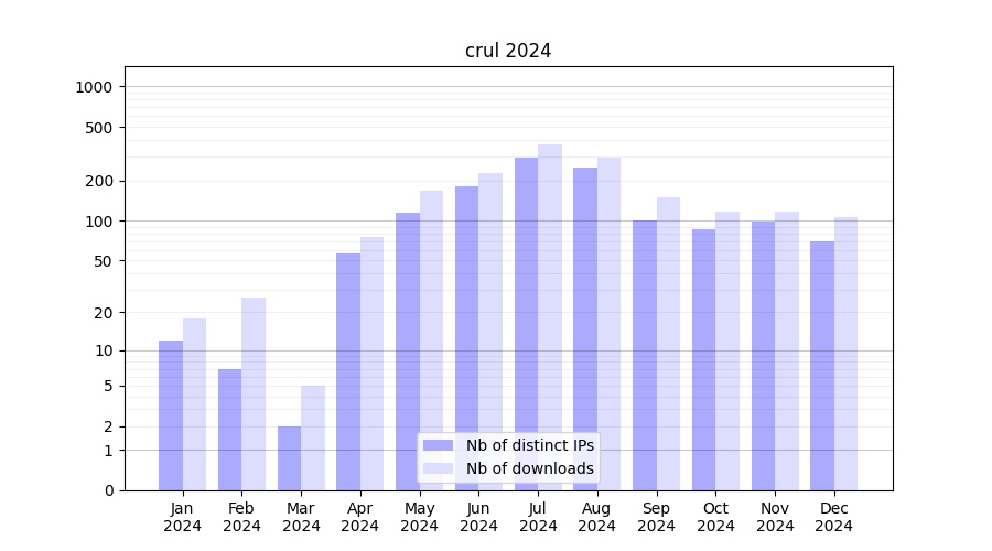 | Month | Nb of distinct IPs | Nb of downloads |