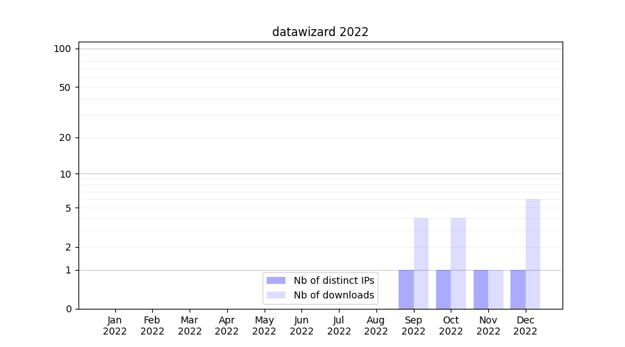 Number of downloads for workflow package datawizard, year by year, from 2025 back to 2015 (years with no downloads are omitted):