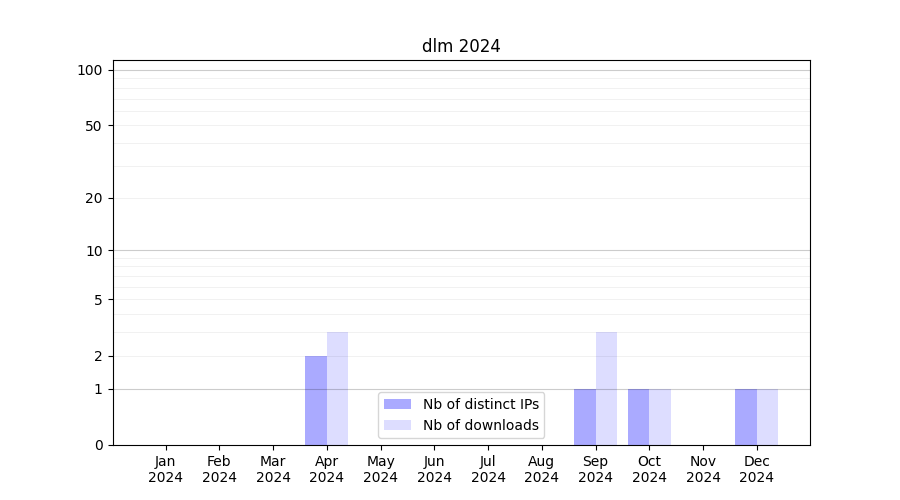 Number of downloads for workflow package dlm, year by year, from 2025 back to 2015 (years with no downloads are omitted):