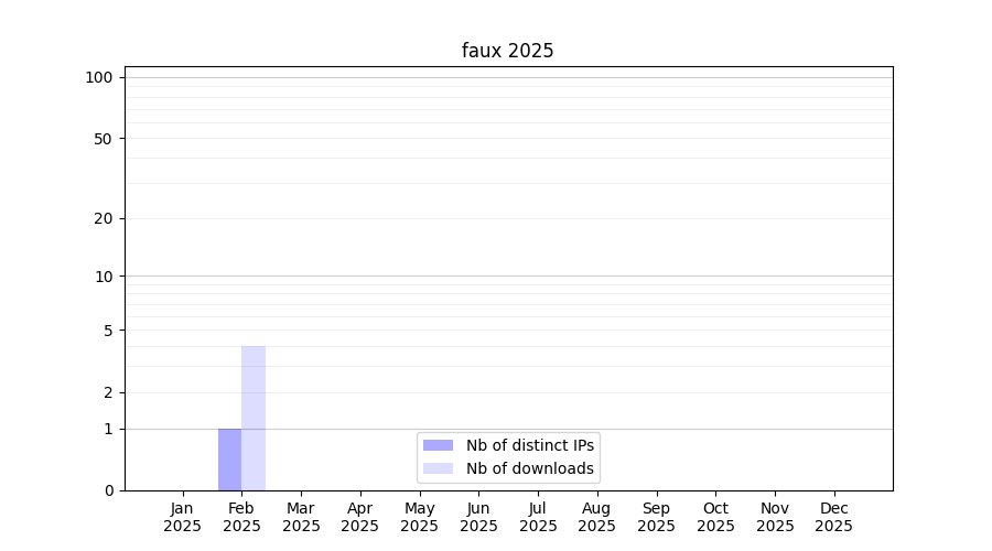 Number of downloads for workflow package faux, year by year, from 2025 back to 2015 (years with no downloads are omitted):