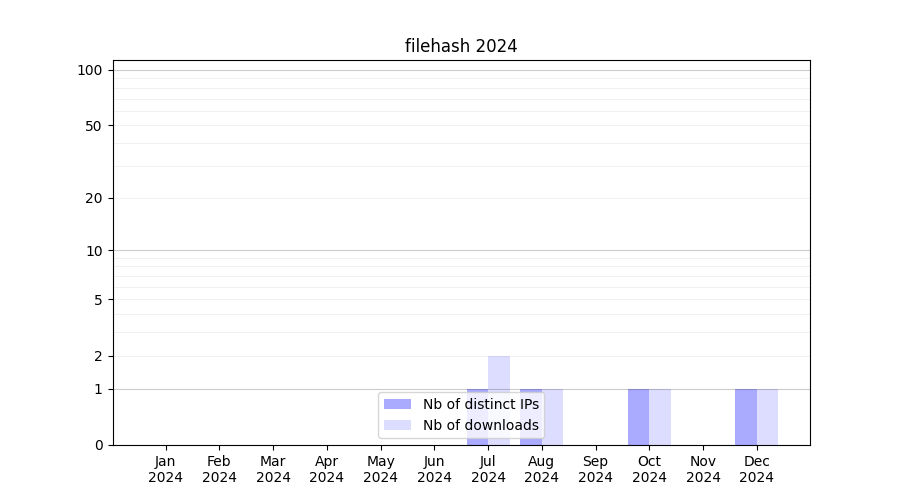 Number of downloads for workflow package filehash, year by year, from 2025 back to 2015 (years with no downloads are omitted):