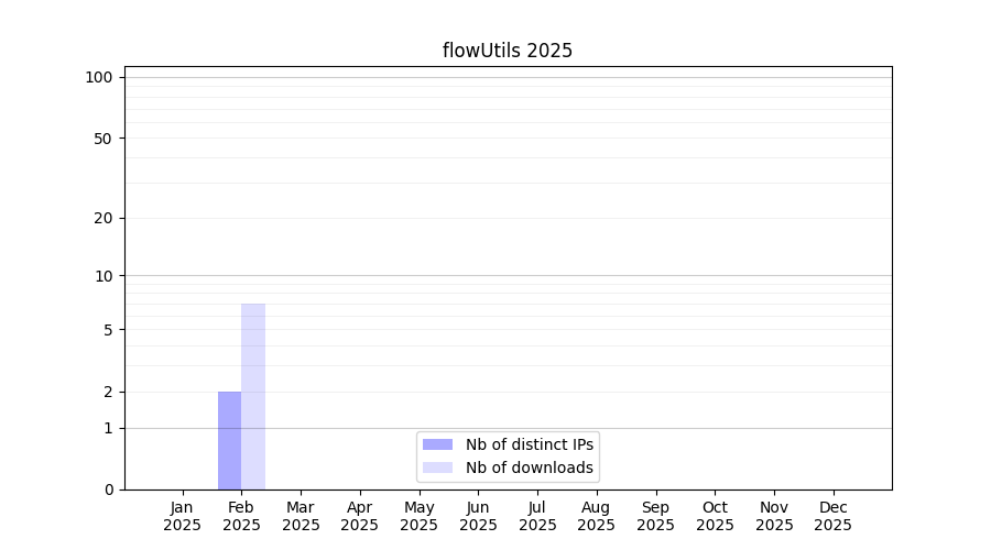 Number of downloads for workflow package flowUtils, year by year, from 2025 back to 2015 (years with no downloads are omitted):