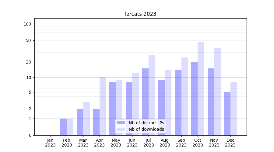 | Month | Nb of distinct IPs | Nb of downloads |