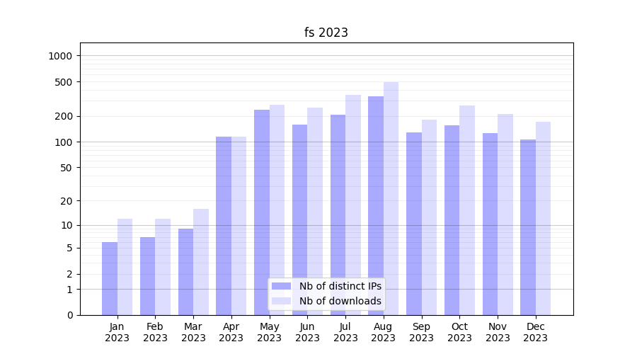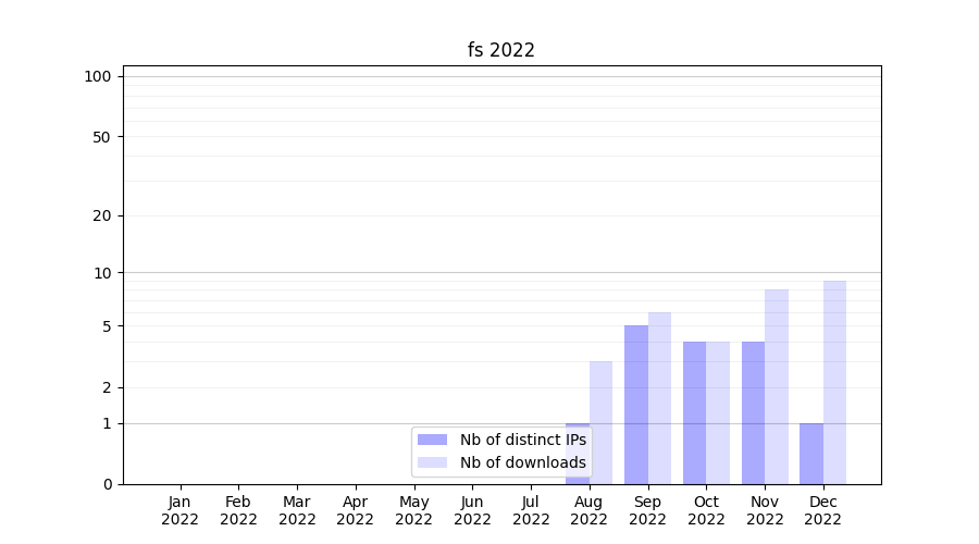Number of downloads for workflow package fs, year by year, from 2025 back to 2015 (years with no downloads are omitted):