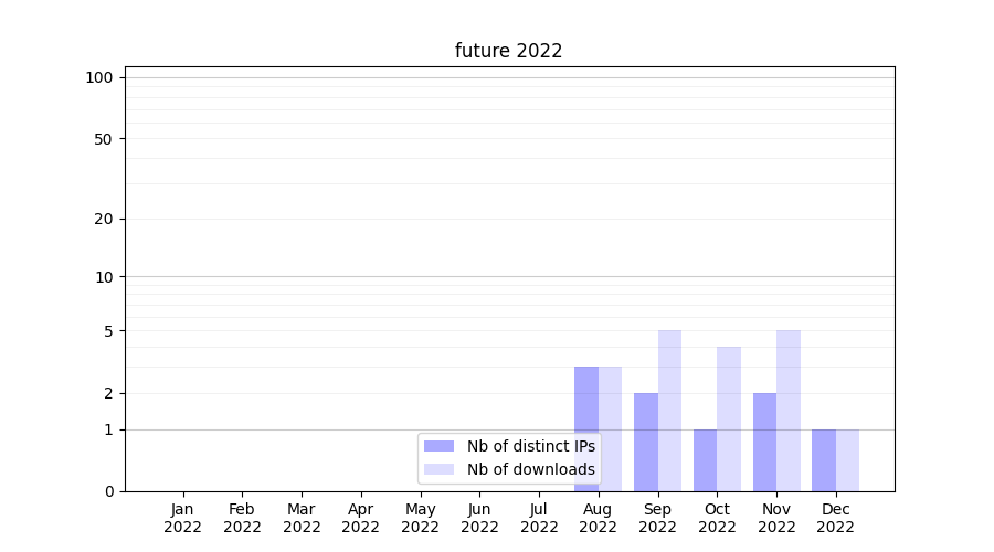 Number of downloads for workflow package future, year by year, from 2025 back to 2015 (years with no downloads are omitted):