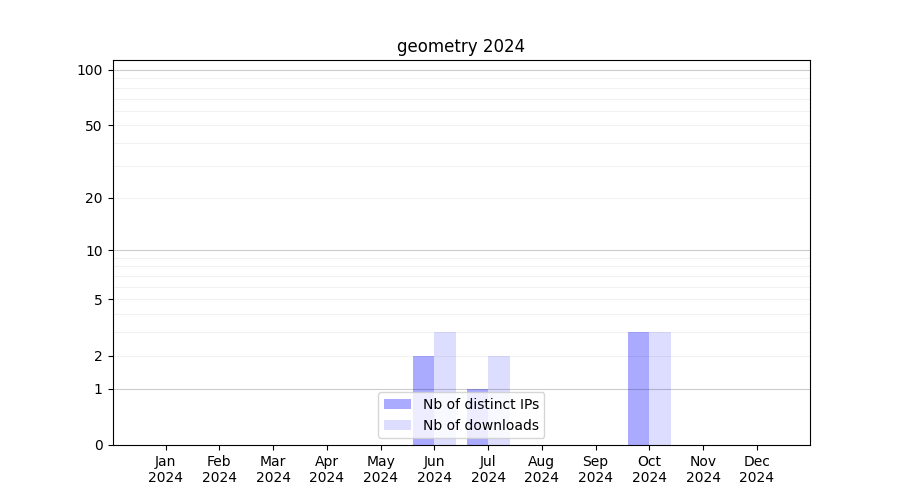 Number of downloads for workflow package geometry, year by year, from 2025 back to 2015 (years with no downloads are omitted):