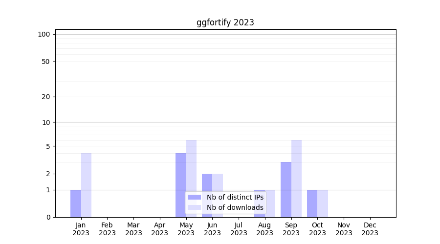 Number of downloads for workflow package ggfortify, year by year, from 2025 back to 2015 (years with no downloads are omitted):