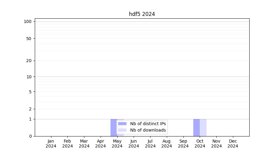 Number of downloads for workflow package hdf5, year by year, from 2025 back to 2015 (years with no downloads are omitted):