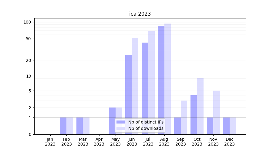 Number of downloads for workflow package ica, year by year, from 2025 back to 2015 (years with no downloads are omitted):