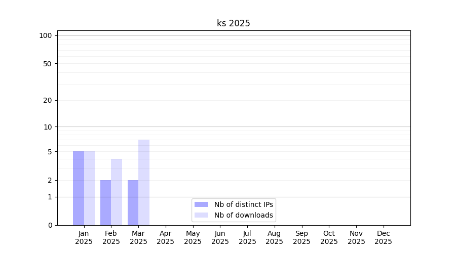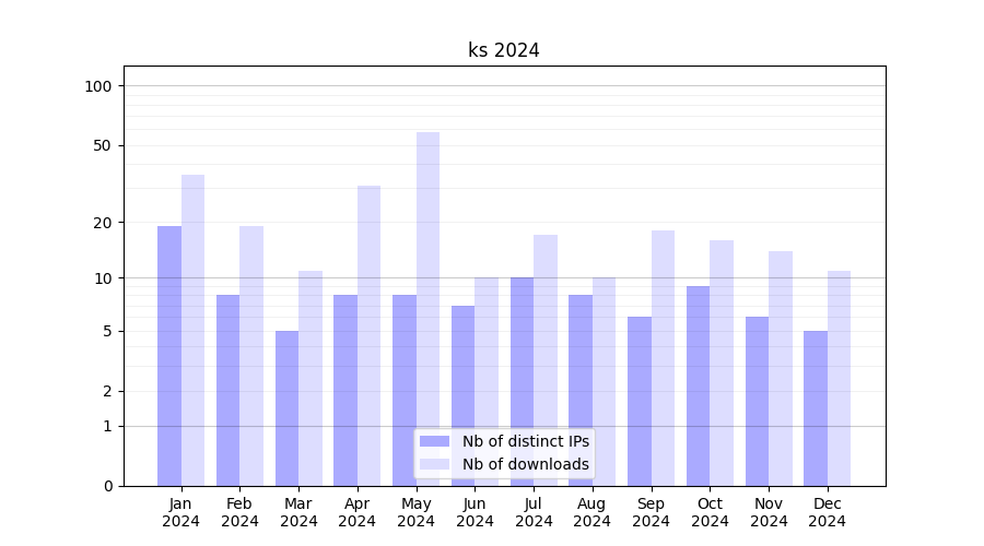Number of downloads for workflow package ks, year by year, from 2025 back to 2015 (years with no downloads are omitted):