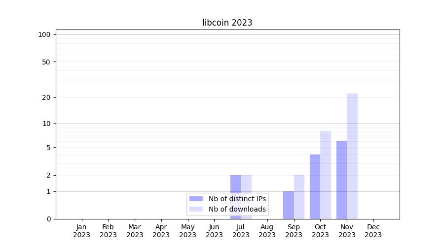 Number of downloads for workflow package libcoin, year by year, from 2025 back to 2015 (years with no downloads are omitted):