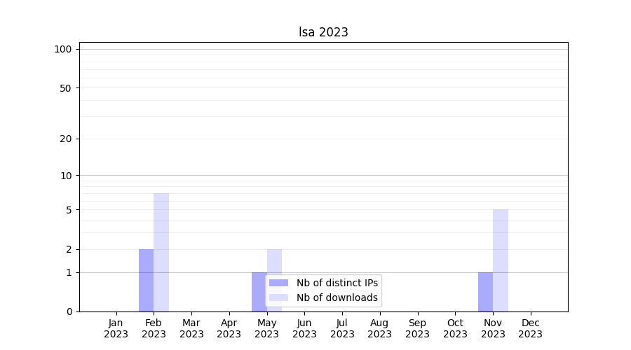 Number of downloads for workflow package lsa, year by year, from 2025 back to 2015 (years with no downloads are omitted):
