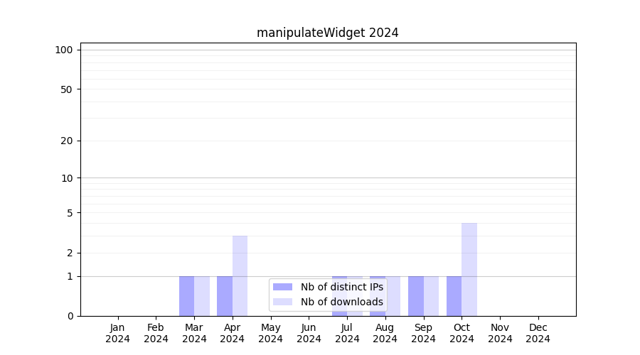Number of downloads for workflow package manipulateWidget, year by year, from 2025 back to 2015 (years with no downloads are omitted):
