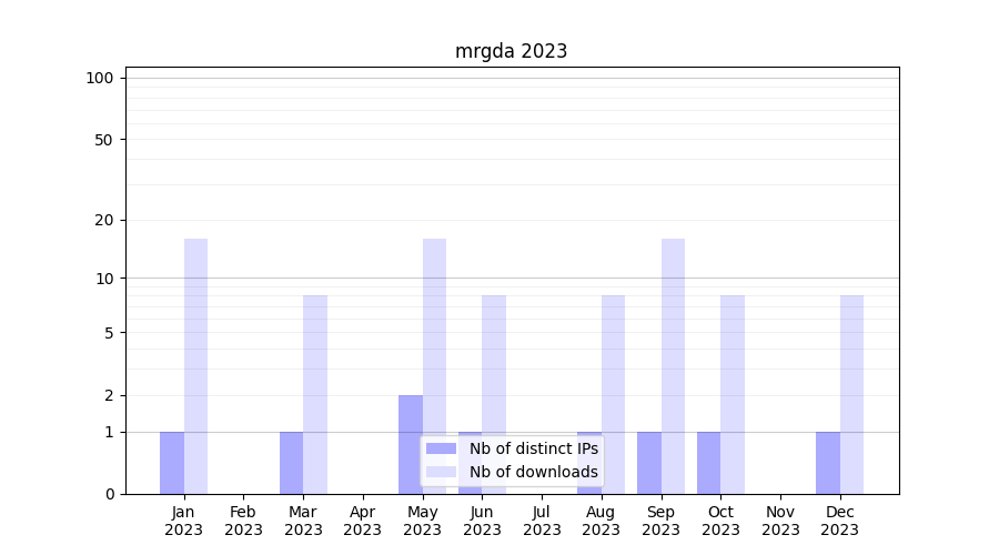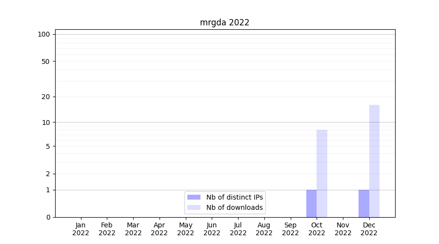 Number of downloads for workflow package mrgda, year by year, from 2025 back to 2015 (years with no downloads are omitted):