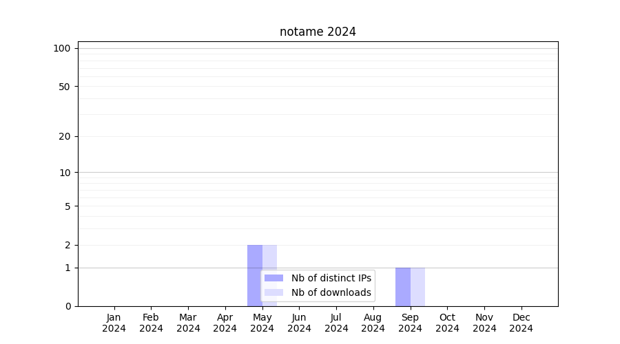 Number of downloads for workflow package notame, year by year, from 2025 back to 2015 (years with no downloads are omitted):