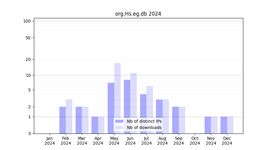 Number of downloads for workflow package org.Hs.eg.db, year by year, from 2025 back to 2015 (years with no downloads are omitted):