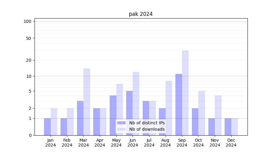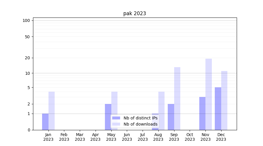 | Month | Nb of distinct IPs | Nb of downloads |
