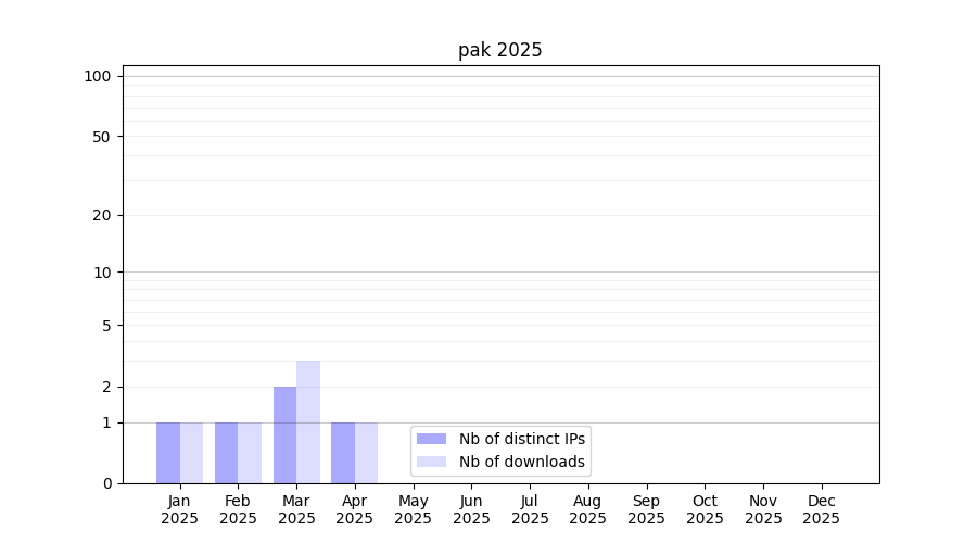 Number of downloads for workflow package pak, year by year, from 2025 back to 2015 (years with no downloads are omitted):